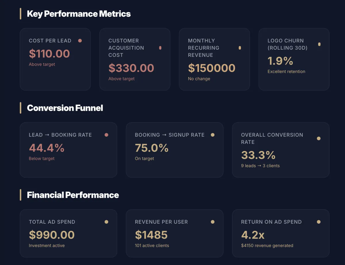 Track ad spend, leads, and conversions in one place to maximize ROI and eliminate wasted marketing dollars.